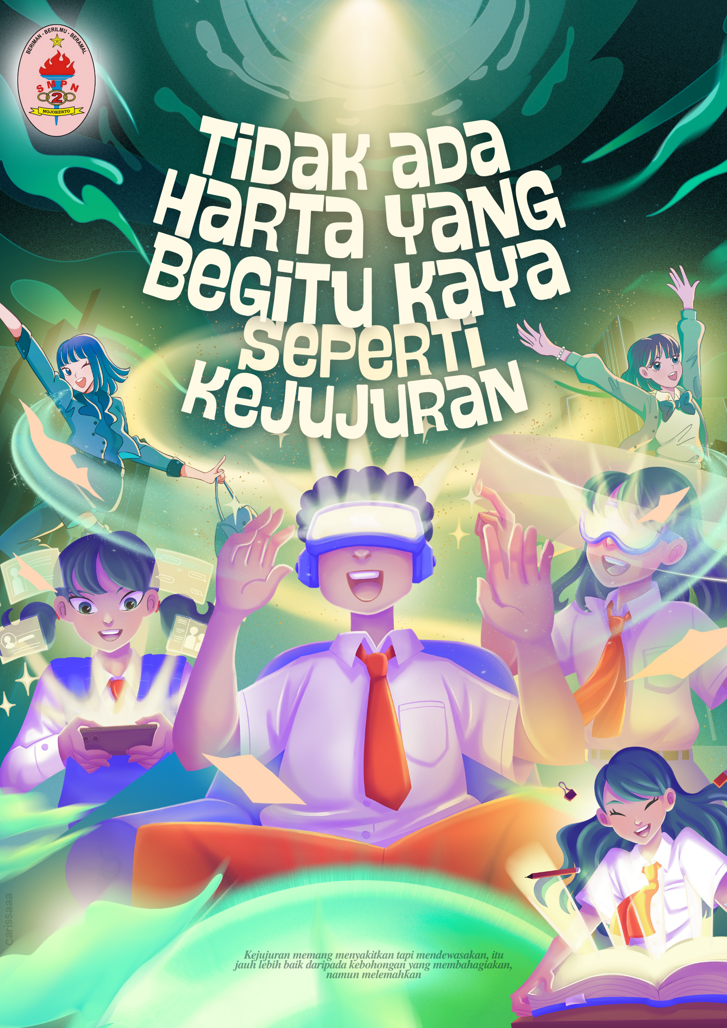 Jam kelima sampai ketujuh setiap siswa membuat flyer/slogan dengan aplikasi Canva yang isinya mengajak untuk menegakkan nilai kejujuran dan dampak dari tindakan tidak jujur. Sebelum pulang peserta didik menulis refleksi tentang tindakan jujur dan tidak mencontek atau plagiasi.