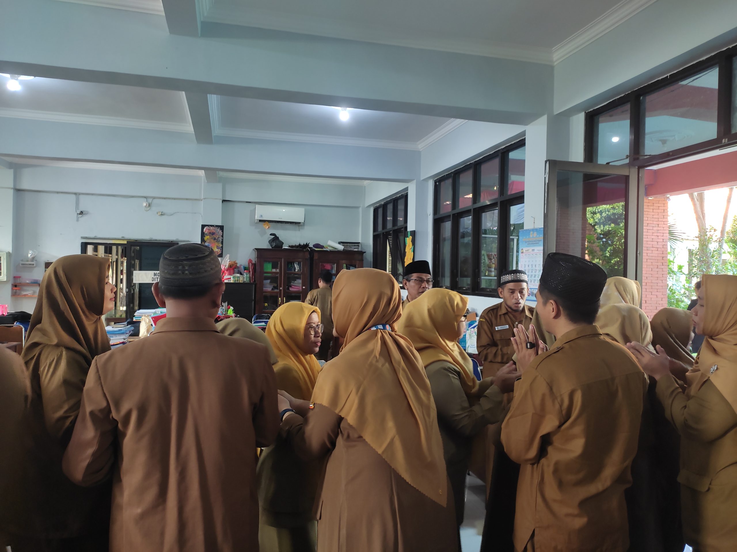 Bapak Mulib menyampaikan hari ini adalah momen bermaaf-maafan dan berkumpul kembali bagi keluarga besar SMP Negeri 2 Mojokerto. Beliau juga meminta Waka Kesiswaan bersama tim untuk berkordinasi merancang kegiatan besok serta Waka Sarpras mengecek sarana dan prasarana.