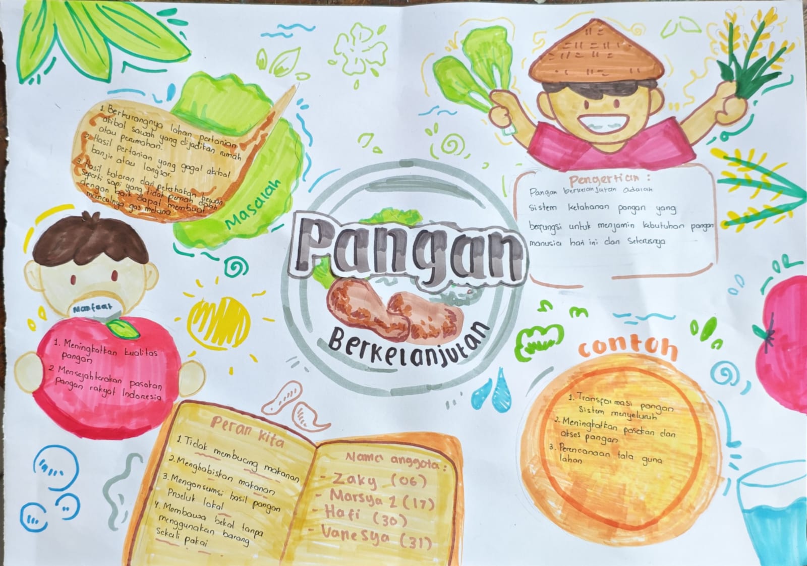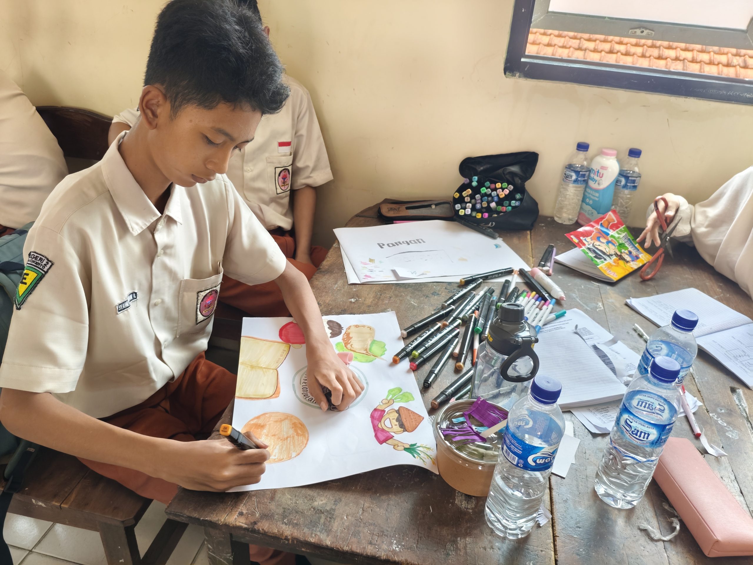 Setelah istirahat mereka melihat video mengenai Sistem Pangan Berkelanjutan. Selanjutnya, peserta didik berdiskusi untuk menemukan 5 permasalahan dan 5 solusi untuk topik permasalahan pangan. Hasil dari diskusi ditulis di buku masing-masing. Mereka kemudian membuat Mind Mapping tentang materi Makanan Sehat dan Berkelanjutan pada kertas A3 dengan menggunakan pensil warna. Terakhir, peserta didik mempresentasikan hasil kerja mereka.