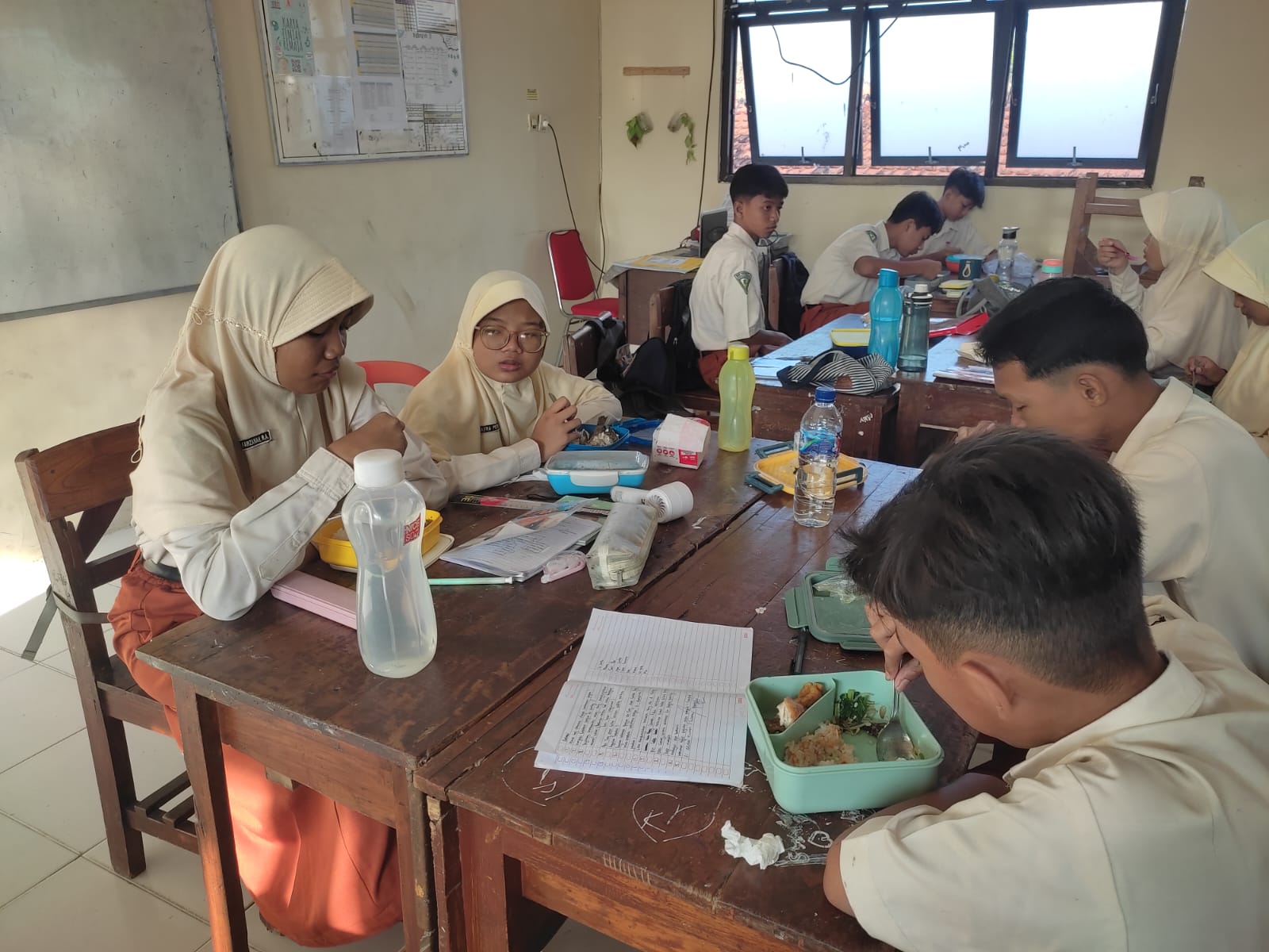 Setelah melakukan Literasi Rohani dan Senam Anak Indonesia Sehat, peserta didik sarapan bersama bapak ibu guru di kelas. Sebelumnya mereka telah mencatat apa saja isi bekal mereka ke dalam buku. Kemudian, mereka melihat video mengenai pentingnya menjaga pola makan dan tubuh yang ideal.