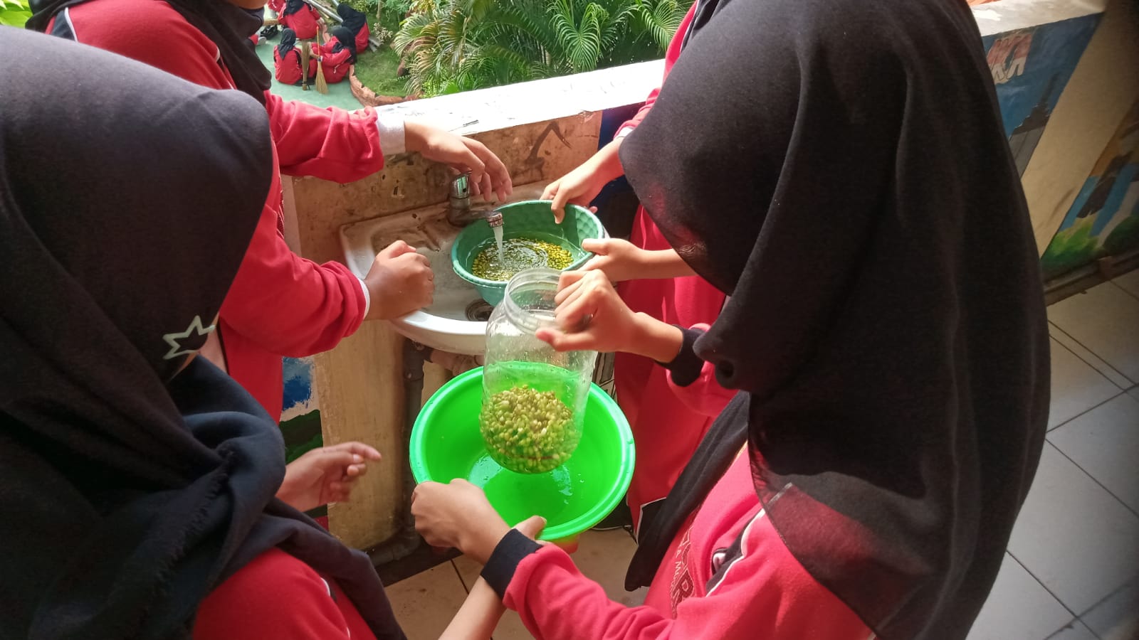 Pada jam terakhir peserta didik memindahkan biji kacang hijau ke media tanam. Sebelum pulang mereka mengisi lembar refleksi dan membersihkan kelas.