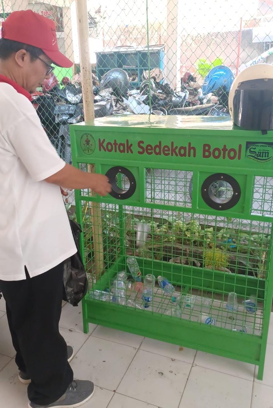 Botol plastik yang sudah tidak terpakai masih punya nilai ekonomi. Tak hanya itu, plastik sangat berpengaruh pada kualitas tanah. Salah satu tamu menyumbangkan botol minum ke dalam kotak sedekah botol. Bayangkan jika seluruh masyarakat kota Mojokerto melakukan hal serupa.