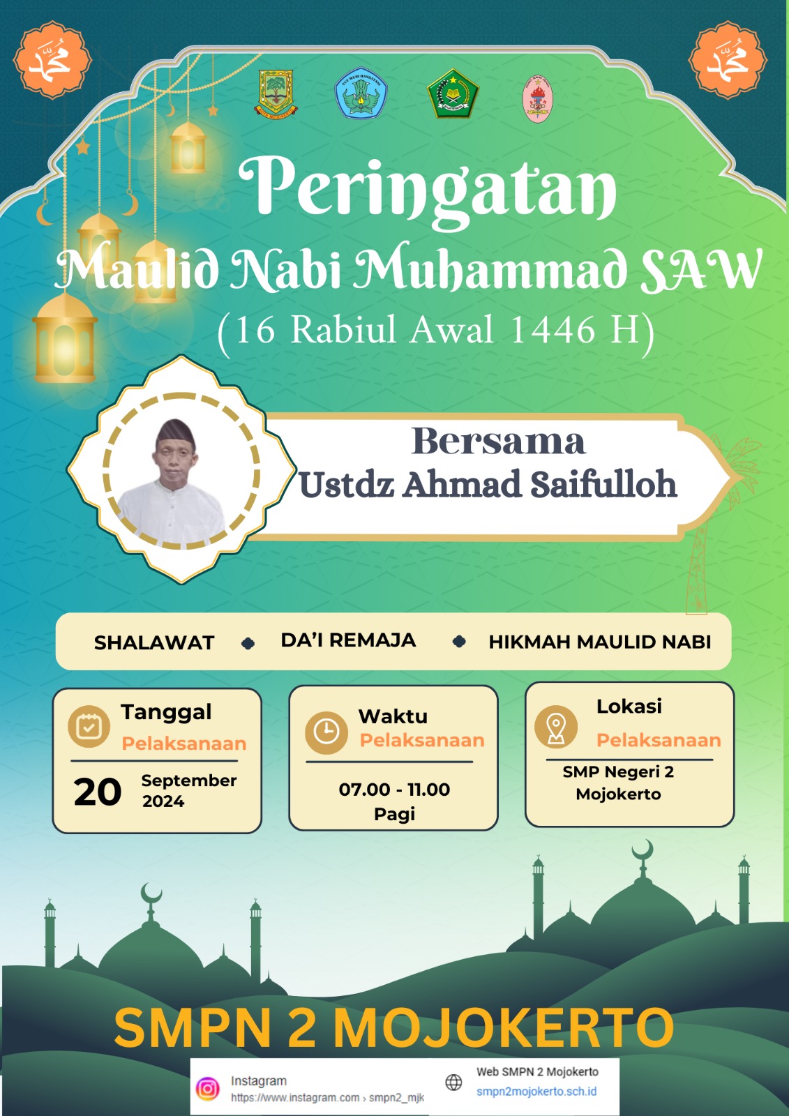 Semoga kegiatan perayaan maulid nabi semakin menambah rasa cinta anak-anak SMP Negeri 2 Mojokerto untuk bershalawat dan meneladani sifat baik Nabi Muhammad SAW.