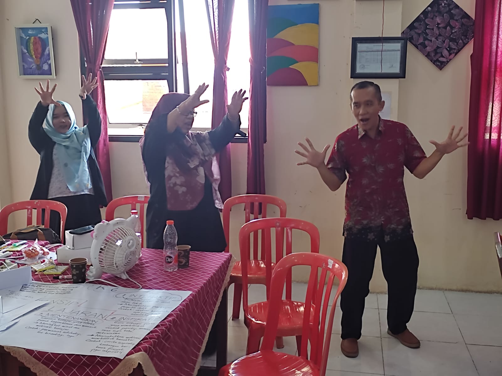 Bu Isna selaku moderator memperkenalkan narasumber. Sebelum materi, Bapak Marjuki mengajak peserta bernyanyi “Kontrak belajar lima jari.” Sambil menggerakan jemari, masing-masing jari mempunyai arti.